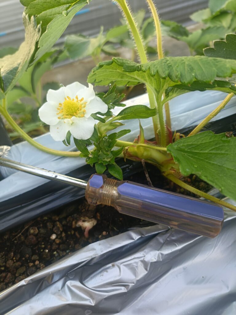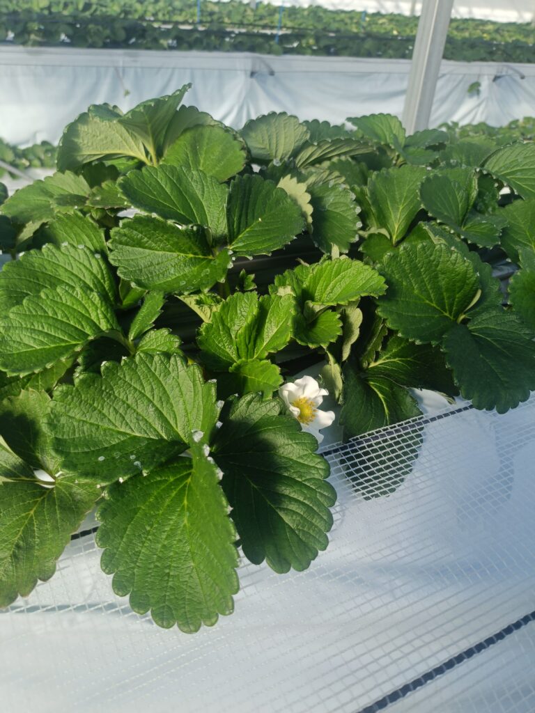 新品種は休眠しないようなものが選定されたのか、電照が株を大きくする方に働きすぎて実の栄養をとってしまうことがあるので当園では使いません。